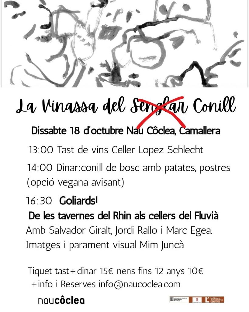 Aquest any La Vinassa és del Conill (menjarem conill de bosc) i està dedicada a la poesia dels Goliards, clergues i estudiants errants medievals que escrivien i cantaven poemes satírics, burlescos i hedonistes en llatí, sovint criticant l’Església i celebrant el vi, l’amor i la llibertat. Espectacle amb Salvador Giralt (recitat) Marc Egea i Jordi Rallo (músics) i les imatges de Mim Juncá.